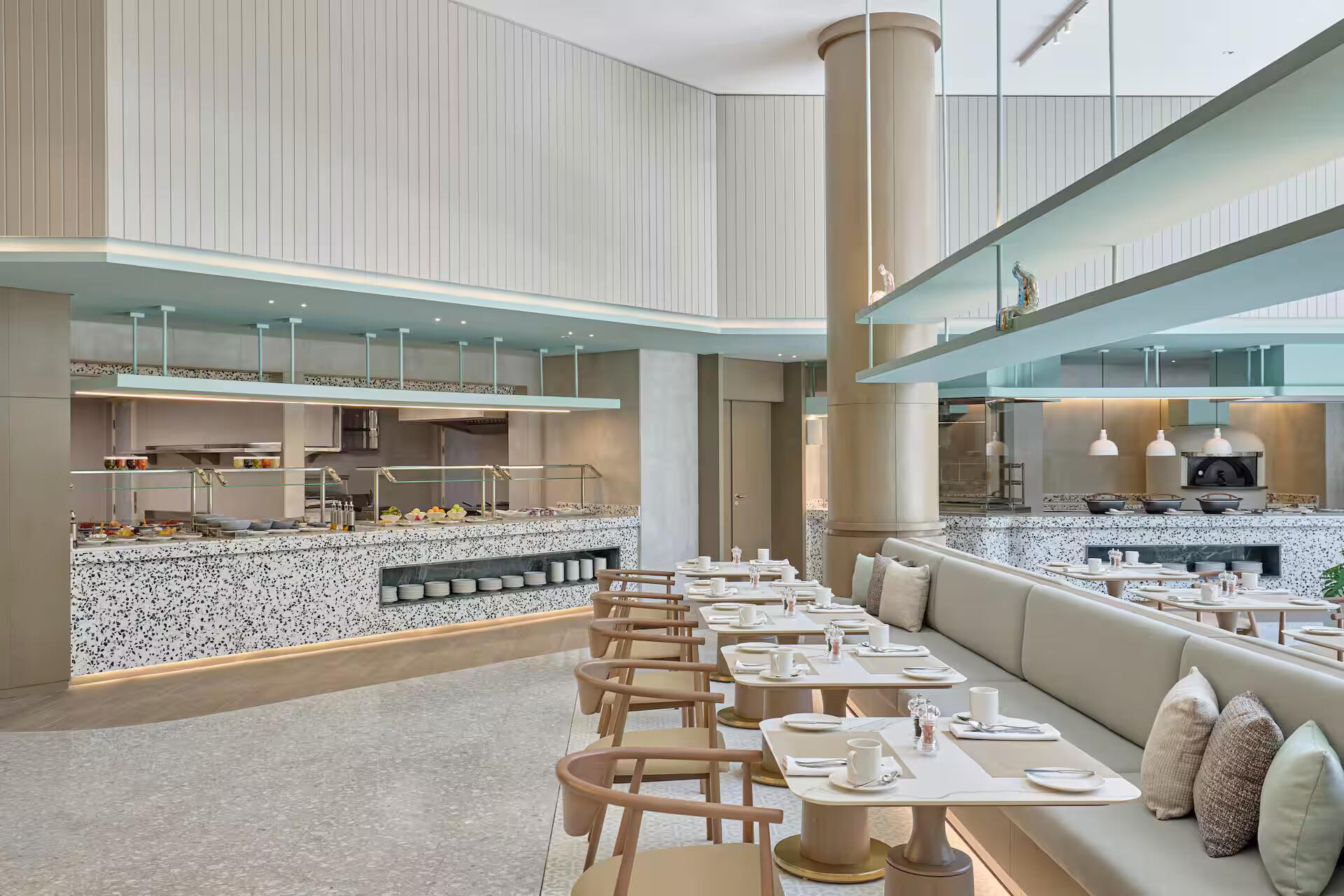 На территории отеля работают кофейня Dryp Coffee Hub, бар Social Creatures, ресторан The Kitchen с ближневосточной, средиземноморской и интернациональной кухней. Завтрак сервируется по системе «шведский стол».